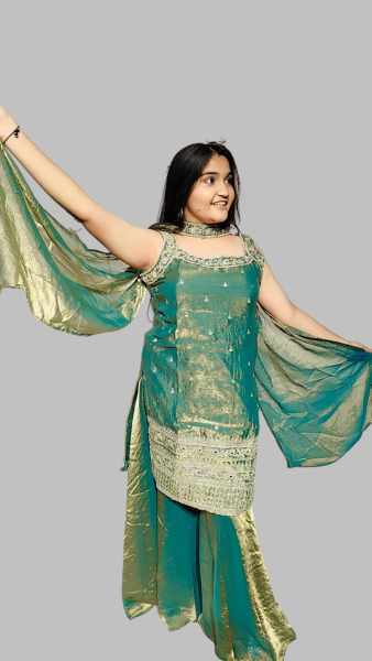 From festive lehengas to fusion kurtas, from chic co-ord sets to statement shararas, every piece is thoughtfully tailored to complement Indian body types, ensuring comfort, versatility, and effortless charm. Rich fabrics, artisanal embroideries, and nature-inspired prints form the essence of our designs—each garment telling a story of tradition, with a modern twist.